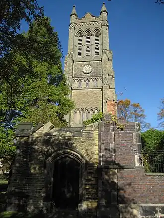 Christ Church Tower is a Gothic Revival church tower in Prince Albert Street, Crewe, Cheshire, England. It was built in 1877 for Christ Church parish church, and retained when much of the church was demolished in 1977. Within the shell of the former church there is now a memorial garden.[1]