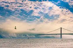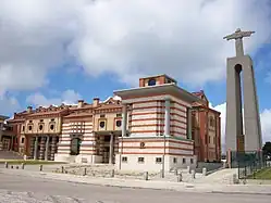 The Sanctuary of Christ the King[1][2][3] (Portuguese: Santuário de Cristo Rei) is a Catholic monument and shrine dedicated to the Sacred Heart of Jesus Christ overlooking the city of Lisbon situated in Almada, in Portugal. It was inspired by the Christ the Redeemer statue of Rio de Janeiro, in Brazil, after the Cardinal Patriarch of Lisbon visited that monument. The project was inaugurated on 17 May 1959. The giant statue was erected to express gratitude because the Portuguese were spared the direct destructive effects of World War II.