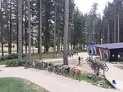 Parts for the park's chairlift and much of the bike rental fleet were stuck in Wellington after the port was damaged in the 2016 Kaikōura earthquake, but this did not cause a delay to the planned opening.[6] It cost NZ$20m to build the park,[7] and the Government made a NZ$2m grant available in May 2014.[8] This grant was given on the condition that the park was to be open by December 2016, which forced the developer to proceed at a high speed after construction started.[1] Christchurch City Council later also granted NZ$2m in support of the investment.[7] Just over half of the park's funding came from overseas sources.[1]