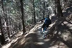 The park is set on 358 hectares (880 acres) and is located in the suburb of Cashmere, surrounded by Dyers Pass Road, the Summit Road, and Worsleys Road.[2] The park features a 1.8 kilometres (1.1 mi) chairlift that gains 435 metres (1,427 ft) height, and has a capacity of 1,200 riders and their bikes per hour. There are four sections of zip-line in the park, with two of them 1 kilometre (0.62 mi) in length.[2] When the park opened, the chairlift gave access to 50 kilometres (31 mi) of downhill tracks of different levels of difficulty, and the restaurant can seat 180 people.[1] The developer claims that the park is the largest facility of its kind in the Southern Hemisphere.[1]