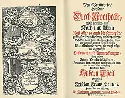 - ^ Christian Franz Paullini (1695). Zeit-kürtzende Erbauliche Lust, oder Allerhand außerlesene rar- und curiose, so nütz- als ergetzliche Geist- und Weltliche Merckwürdigkeiten. Knoch.