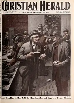 February 10, 1904 cover depicting the breadline at The Bowery Mission.