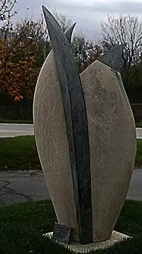 Chrysalis is a public artwork by American artist Beth Sahagian located at the entrance of the Marion Chester Read Center, which is near Wauwatosa, Wisconsin, United States. The sculpture is carved from 2,500 pounds of Indiana limestone and bronze. It consists of one solid form and measures about 75" x 36". Chrysalis was installed in the entrance of the Marion Chester Read Center in October 1990.