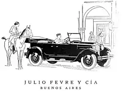 In 1890, Julio Fevre founded "Julio Fevre y Cía." which started operations importing machinery and chemical products for tanning industry. In 1910 Julio took control over the company. Under his direction, the company changed direction and entered to the vehicle market importing automobiles of French marques Mors, Delaugère et Clayette, Aries, Delage, Delahaye, Citroën, and Berliet. In 1914 driver Diego Basset participated in racing competitions with the Mors cars imported by Fevre. Years later, Julio Fevre himself (and then his son Pablo) also competed with Mors cars.[3]