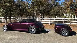Due to limited trunk space, a $5,000 Prowler trailer option was available from Chrysler dealers. These trailers resembled the back end of a Prowler and had 15-inch versions of the five-spoke wheels found on the car.[12] They could be ordered to match a car's factory color. The vehicles were equipped with a trailer hitch to accommodate the trailer option; however, a warning was affixed to the hitch indicating that it was not to be used to tow any other trailer, such as for a boat, camper, etc. Doing so would void the factory warranty.[13]