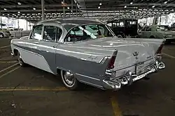 The first version of the Chrysler Royal, the AP1, was introduced in May 1957.[2] It was a development of the American Plymouth P25 design[3] of 1954 which had itself been produced by Chrysler Australia as the P25 Plymouth Cambridge and Cranbrook, the D49 Dodge Kingsway and the SP25 De Soto Diplomat.[4] Original designations for the three different designs were AD1 for the Dodge, AS1 for the DeSoto and AP1 for the Plymouth.[2] Plans to market the updated version under these three names were dropped late in the development program and the new model would be sold only as the Chrysler Royal[5] thus revising a name used by Chrysler in the US market[5] from 1937 to 1950. The design chosen for the final model was that proposed for the Plymouth variant, thus the AP (Australian Plymouth) designation was adopted, and changed to stand for Australian Production.[2] The Royal differed from the P25 in using front and rear mudguards similar to those on the 1956 US Plymouth and a rear window which was larger than that of the P25.[5] The AP1 was originally only produced as a Royal four-door sedan; the Plainsman four-door station wagon was introduced during 1958.[6]