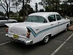 The Chrysler Royal is an automobile which was produced by Chrysler Australia from 1957 to 1963. After investing in tooling to stamp body panels for the 1954 P25 series Plymouth locally, and with Chrysler headquarters in Detroit unwilling to assist in the costs of retooling for the new US models, Chrysler Australia made the decision to develop their own range, using as much of the existing tooling as possible, whilst also realising that the new car had to appear as different as possible. The doors and basic structure of the P25 sedan was retained, and with input from Australian and American Chrysler designers, the 1955 US Plymouth front sheetmetal was adapted to the P25 body and the rear quarter panels redesigned. They also added a wraparound rear windscreen, which caused development problems with Pilkington Glass, the Australian suppliers, who struggled to get the correct curved shape.[2]