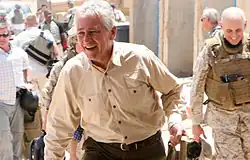 After the 9/11 terrorist attacks, Hagel voted in favor of Senate Joint Resolution 23, authorizing "necessary and appropriate U.S. Military force" in Afghanistan against those who planned or aided the September 11 attacks.[42] During his tenure in the Senate, Hagel continued his support for NATO involvement, and funding in the War in Afghanistan.[43] In a 2009 The Washington Post op-ed after being nominated as Chairman of President Obama's Intelligence advisory board, Hagel said that "We cannot view U.S. involvement in Iraq and Afghanistan through a lens that sees only 'winning' or 'losing,' Iraq and Afghanistan are not America's to win or lose." And that "We can help them buy time or develop, but we cannot control their fates."[44] In 2011, after he left office, Hagel stated that President Obama needs to start "looking for the exit in Afghanistan", and that "We need to start winding this down."[45]