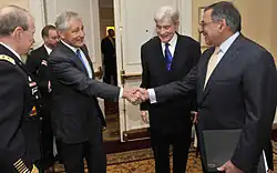 - ^ Miklaszewski, JIm (November 24, 2014). "'Greatest Privilege of My Life': Chuck Hagel Resigns as Defense Secretary". NBCNews.com. Retrieved November 24, 2014.