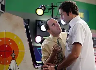 "Chuck Versus Tom Sawyer" is the fifth episode of the second season of Chuck. It originally aired on NBC on October 27, 2008. Life in espionage takes its toll on Chuck Bartowski and everyone is taking notice. Chuck tries to explain his unusual behavior to Ellie Bartowski and to the quirky Buy More efficiency expert Emmett Milbarge (Tony Hale), but a new assignment only complicates things. After a global terrorist comes searching for Jeff Barnes, Chuck is forced to socialize with Jeff in order to find out what role the oddball plays in the mission.