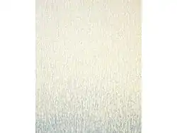 As his works came to bear the form of complete abstraction in Kobe from 1973, he replaced vivid colours with monochromes.[9] Chung Sanghwa's monochrome, however, consists of numerous variants of the same colour. Most of his works are in delicate shades of white or blue. According to the artist, blue is refreshing and can express subtle and mysterious changes of shades, while white has a strong presence and is effective and transparent in displaying the content or the process of his works.[27][29] No two works are of the identical colour and Chung demonstrates strict control of his layering of acrylic paint that seep through individual surfaces of the pixelated canvas and varying depths of kaolin to form unique arrays of colours.[30][31]