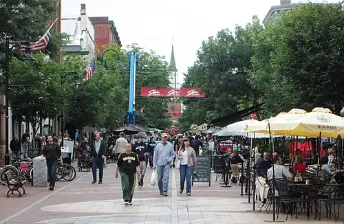 The Church Street Marketplace is an uncovered outdoor pedestrian shopping and dining mall in Burlington, Vermont, consisting of the four blocks of Church Street between Main and Pearl Streets. The mall was initially conceived in 1958 and was built in 1980-81 to a design by Carr, Lynch Associates of Cambridge, Massachusetts. It encompasses about 86 storefronts and is managed by the Church Street Marketplace Commission.