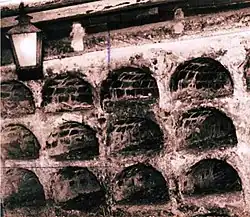 The Iglesia del Espíritu Santo's greatest interest from an architectural point of view lies in the simplicity of the coral stone construction and the lack of lavish decoration.[5][a] Other elements of great importance are the funerary crypts that were discovered in 1953. The crypt is from times before the Colon Cemetery (1876) in El Vedado was built. The crypt is entered from the left of the altar and contains several catacombs.