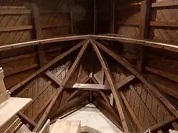 It was designed for a congregation of 230.[3] It is a three-bay nave, that is, there are three spaces between the main timber roof trusses. This scissor braced truss roof is supported on hand-carved but fairly plain corbels.[1]