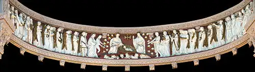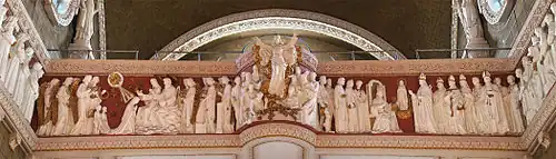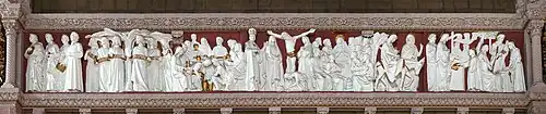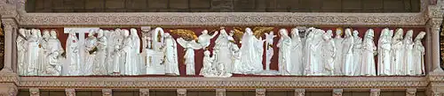 The most spectacular work of Carli Petrucci is unquestionably the monumental frieze of The Apotheosis of the Virgin Mary, installed in 1927. It presents 27 paintings depicting the life of the Blessed Virgin, religious institutions and the bishops of Montreal as well as the founders of this city.