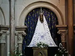 In the south apsidiole above an altar of goldsmithery is a wooden statue called Notre-Dame de Bon-Espoir (Our Lady of Good Hope). Dating from the 11th or 12th century, this statue of the Virgin is thought to be one of the oldest in France. Originally she was seated on a throne, holding the baby Jesus on her knees. Later the throne was removed and the back of the statue was sawn off and replaced by a piece of wood. The baby Jesus disappeared during the French Revolution, in 1794. By the 18th century, the Virgin's hands had been lost. In contrast, her face is almost undamaged. For several centuries, the statue was often shown crowned and wearing a robe. From 1959, it was decided to no longer use these decorations, so that everyone could see the complete Romanesque statue.