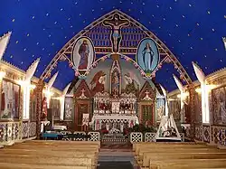 The Church of Our Lady of Good Hope (French: Église Notre-Dame-de-Bonne-Espérance) is an historic Carpenter Gothic-style Roman Catholic church building located on a bluff overlooking the Mackenzie River in Fort Good Hope, Northwest Territories, Canada. Only 45 by 25 feet (13.7 by 7.6 m) in size, it was built between 1865 and 1885 as a mission of the Oblate Fathers. Father Émile Petitot, "renowned ethnologist, linguist and geographer of the Canadian northwest" was a resident of the mission from 1864 to 1878.[1]