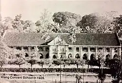 Adjacent to the church is the Convent of the Holy Infant Jesus and its convent schools (primary and secondary). The convent had been built by 1928 for the Sisters of the Infant Jesus who conducted a school in nearby Kuala Lumpur - Convent Bukit Nanas - and were keen to open a similar private missionary school for girls in Klang.[7] Ownership of the school remains with the Sisters.[8] Convent Klang celebrated its centenary in 2024 when 730 primary and 1,100 secondary schoolgirls constituted the student cohort.[9][10]