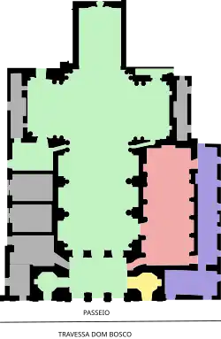 The convent, located next to the church, with a square central cloister, underwent many changes over time and housed different activities. In the 19th century, it hosted the General Council of the Province and also the first seat of the Provincial Legislative Assembly. For a time, it housed the Colégio Paraense, a traditional boarding school in the city. It also served as the Asilo de Órfãs Desvalidas, a military hospital and a minor seminary.[6][2]