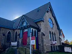 The Church of Our Saviour, located at 65 East Holister Street in the Mount Auburn neighborhood of Cincinnati, Ohio, is a parish of the Episcopal Diocese of Southern Ohio. The parish's historic stone church was built in 1877[1] in the Gothic Revival style. Our Saviour was founded by wealthy residents of the once-affluent suburb of Mount Auburn, about 1 mi (1.6 km) north of downtown. Cincinnati annexed Mount Auburn in 1849.[2]