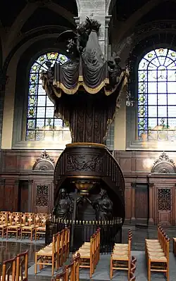 The pulpit was carved by the sculptor François Rude between 1825 and 1828. It is made up of a tent topped by an angel and cherubs, with Faith and Hope supporting a vessel adorned with a bas-relief of St Stephen's martyrdom. The 1840 organ was built by the Daublaine Callinet house. It has been modified four times (by Cavaillé-Coll in 1899 then by Mutin in 1901) and now has 39 jeux, 3 keyboards and pedals.