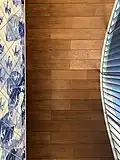 The interior features the Stations of the Cross, made up of 14 panels by Candido Portinari, considered one of his most characteristic works. Alfredo Ceschiatti carved the bronze bas-reliefs of the baptistery. On the exterior, the figurative art panels are by Portinari and the abstract ones are by Paulo Werneck. The exterior walls are covered in pastel ceramic tiles in shades of light blue and white, forming abstract designs. The distinctive landscape of the church is the work of Roberto Burle Marx, a longtime Niemeyer collaborator.[1] The little church of Pampulha is one of the most well-known "postcard scenes" of Belo Horizonte.