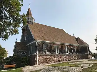 Church of Saint Lawrence is a historic Episcopal church located at Alexandria Bay in Jefferson County, New York. It was built in 1889 and is a three-by-four-bay wood-frame Shingle Style structure on a massive, raised stone foundation. It is composed of an entry porch, nave and chancel with symmetrical, octagonal ells housing organ pipes on the west and sacristy on the east.[2]