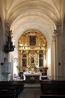 From an inventory of the year 1668, we know that the main altarpiece was still conserved; however, in 1716 the present altarpiece appears. It was built at the end of the 17th century. On April 28, 1698, Sebastián de la Puerta, Juan Miren Fernández, and Pedro Capuchín, master gilders from Valladolid, undertook to gild the new altarpiece.