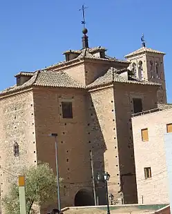 The original 12th century building was extensively remodelled in the 17th century by Juan Bautista Monegro, but retains some Mudejar features, notably its tower from around the end of the 13th century.[2]