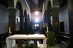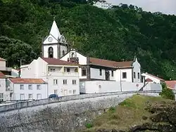 The new church was built away from the sea on the site of a small chapel dedicated to Saint Catherine (Portuguese: Santa Catarina) which was destroyed during a volcanic eruption.[1] It is believed that the construction of the current Church of Santa Catarina was begun in the 17th century.[1] Building lasted for a considerable period and was only completed around 1763 as a result of the Mandado de Deus earthquake, which hit the island on 9 July 1757.[1][2] The church did not have a baptismal font until 1664 when it was provided by visiting parish priest António Pires de Serpa.[1]