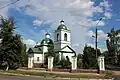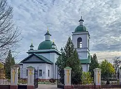 Located in Kholodnye Yary on Kotsiubynsky Street 5, next to the museum-estate of Mykhailo Kotsiubynsky.[2] The central cubic volume is adjoined on four sides by small rooms, and on the west by a square-planned bell tower. The church is built in brick church with a cruciform plan. The central cubic volume is flanked on four sides by small rooms and, to the west, by a square-plan bell tower. It is currently an operational Orthodox church.[3] The architecture of the temple is distinguished by its sobriety and conciseness, the successful proportional relationship between the individual elements and the holistic image of the building. The central bath of the temple has a slender silhouette and its plastered facades are emphasized by elegant wooden frames.[4]