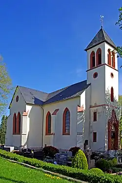 Eschfeld's first parish church stood in what is now the lower village, the old village centre, until 1867. The main patron saint of both the old and the new church is St Lucia. The simple neo-Gothic church in today's upper village was built in 1869/70 under Father Peter Lichter according to plans by the Trier architects Streit and Mendgen.[1][2]