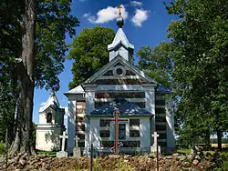 The first information about the Orthodox church in Nosów dates back to 1585.[1] According to another source, the church was established earlier, before 1542, funded by royal courtier Juchna Wańkiewicz.[2] In 1596, after the Union of Brest, the entire Chełm Eparchy (to which the Nosów church belonged) transitioned to the Uniate Church, as Bishop Dionysius of Chełm signed the union act.[3] After this, and before 1609, the Lacki family built a new Uniate church in Nosów.[2] In 1753, the church in Nosów was described as ruined in a bishop's visitation protocol.[4] Another building was constructed on the same site in 1774. Like the oldest Nosów church, this was a wooden structure.[1] The church served as the parish seat of the Łosice Deanery of the Eparchy of Chełm–Belz.[4]