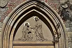 In the beginning, the Baroque plaster was removed and the church showed its stones. After that it was decided to the demolition - the baroque shield of the main nave, including the portal, were demolished and five supporting pillars were met by the same fate. They were rebuilt with a new plinth, as well as new pseudo-Gothic portals on the south, north and west sides. The new main portal was decorated with the Gothic Revial tympanum of Christ and St. Peter by Lewis Šimek, and also with a Czech and Prague emblem next to it. The crown of the southern and northern nave was raised, as well as the sacristy and the northwestern chapel. The church also received new roofs and on the north side was added a chimney with a modern sculpture. The windows were also touched with big changes, some were walled up, others were taken down and others (especially Baroque ones) rebuilt.