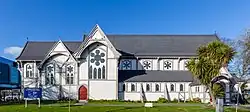 The wooden building survived three major earthquakes in 2010/11 almost unscathed and is the only Anglican church that remained in use in the central city.[11] The plans had been drawn with regard to the threat of tremors. At a meeting of parishioners held on 14 December 1869, the general concept for the new church was agreed on, including the building material: "Owing to the late severe shocks of earthquake the vestry came to the conclusion that it would be useless to attempt building any part of stone. Therefore it was decided that wood should be the material."[12] The earthquake referred to was the one that hit Christchurch on 5 June 1869, with Julius von Haast giving some scientific commentary.[13] St John's Church in Hereford Street, the first Anglican church in Christchurch built of permanent materials in 1864–1865, was damaged in that earthquake.[14][15] The earthquake, centred under Addington or Spreydon, had an estimated magnitude of 5 and a ground shaking intensity of MMI 7.[16]