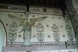 The interior is "calmer"[3] but still elaborate, decorated with wall paintings by a German artist to the designs of Coates Carter, Seddon's architectural partner after John Prichard's death.[1]