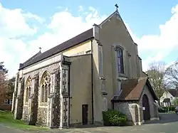 When Ebenezer Howard set up his first garden city in Letchworth in 1903 the Church of England gave little thought as to the spiritual needs of the citizens of the new town by building a central Anglican place of worship. The site being developed by Howard's First Garden City Ltd. crossed the parish boundaries of three local ancient village churches: St Mary's church, St Nicholas, Norton, and All Saints, Willian. When in 1917 the Revd Montagu Sharpin Swatman was appointed to the living of Willian he wished to set up a church in Letchworth's Pixmore area in the expectation of providing a more accessible church for the people of the new garden city, and to provide spiritual sanctuary from the war.[1] He initially hoped to quickly install a temporary structure.[2] However it became apparent this was not possible as the Church of England did not own land in the new development.