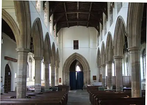 The church dates to the 13th century.[3][4][2] The chancel arch and the arcades in the nave date to the 14th century and the aisles, transepts and clerestory were added in the 15th century.[5][2] Above each column and around the walls are carvings[2] which are thought to have been carved by some apprentice masons who did some work on Canterbury Cathedral.[5]