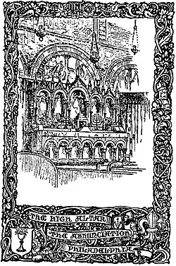 The parish's first Romanesque building was located at Twelfth and Diamond Streets in Philadelphia. Ground was broken on April 20, 1882, followed by the laying of a cornerstone on June 26, 1884. The church building included elements by the New York architectural firm of Heins & LaFarge. It included a bell tower, an adjacent parish house for educational and parochial activities, and free sittings for 650 persons in addition to a large chancel for acolytes and choristers. The reredos was painted by Anita Sargent and Marianna Sloan.