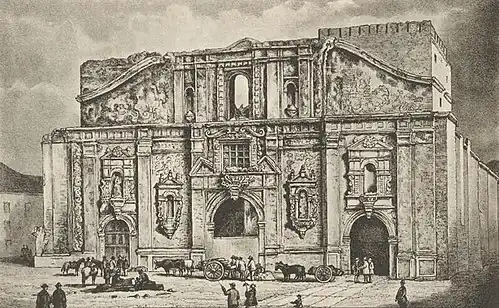 The Church of the Society of Jesus, (Spanish: Iglesia de la Compañía de Jesús) was a Jesuit church located in downtown Santiago. The day of the fire was the celebration of the Feast of the Immaculate Conception, one of the most popular festivities of the religious calendar, and the temple was adorned with a profusion of candles, oil lamps and wall coverings. In the main altar, a large statue of the Virgin Mary stood over a half-moon that in itself was a huge candelabra.