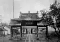 The origin of the East Syriac tradition in Hanchow[l] was researched and recorded by Vyvyan Donnithorne in the early 1930s. The tradition says that Fang Kuan, the prefect of Hanchow from 760 to 762, was a Christian. He built an altar in the second court of the yamen, upon which he placed a pillar, or a stone, and to this sacred place he used to go everyday and worshipped the One God alone.[18] At his daily worship, Fang used to kneel on the stone which later came to be known as Duke Fang Stone.[19] This altar was enclosed on all sides and only Fang Kuan himself was allowed access to it. By his justice and benevolence and loving government he was respected long after his death, even until the time of Donnithorne. In consequence this altar became a place of pilgrimage, where worship was performed for hundreds of years after his death.[20] According to local testimonies, Fang Kuan's name was carved on the no-longer-extant Nestorian stele at Wang Hsiang T'ai Temple.[21] The stele was broken into several pieces for use in building a bridge before Donnithorne could lay his eyes on it.[22] The earlier name for Wang Hsiang T'ai Temple was Ching Fu Yuan, and Ching Fu[m] is a term with the meaning "Blessings of Christianity".[24]