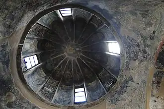 The date of its construction is not entirely clear: the founder's inscription above the entrance, the monograms in the capitals and other inscriptions refer to Nephon I, Patriarch of Constantinople in 1310–1314, as the ktetor. Another inscription on the eastern wall commemorates the same patriarch and his pupil, the hegumenos Paul, as first and second ktetores respectively. Recent analysis using carbon-14 however points to a later date for the entire structure, ca. 1329. A depiction of the hegumenos Paul kneeling before Mary, as well as a series of Marian scenes lead to the conclusion that the church was dedicated to Mary, perhaps to be identified with the Monastery of Theotokos Gorgoepikoos.[2][3]