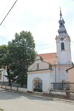 The Church of the Holy Archangel Gabriel (Serbian: Црква светог арханђела Гаврила) in Susek is Serbian Orthodox church in Vojvodina, Serbia. It represents a typical example of single-nave church building in Vojvodina built some fifty years following the Ottoman Empire forces expulsion after the Treaty of Karlowitz.[1] The building was completed in 1770 as the fourth church building at the same site.[2][3] The iconostasis, completed in 1779, is considered to be one of the masterpiece of Teodor Kračun, one of the most distinctive Serbian Baroque painters.[1][2] The church was damaged during the World War II in Yugoslavia when the local orthodox population of Susek was a target of Genocide of Serbs in the Independent State of Croatia.[2]