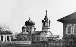 In 1947, the church building, cut from logs, was dismantled and moved to a vacant lot along the current street named after Valikhanov[9] thanks to the intervention of the archbishop Alma-Ata Nikolai (Mogilevsky), who sent a telegram to Moscow to Council for the Russian Orthodox church demanding the return of the temple to the believers.[10]