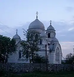 Church of the Intercession (Russian: Свято-Покровский храм) ― the only one of three Orthodox churches (there were also St. Andrew's Church in the village of Sulin and St. Alexander Nevsky's Church) that has still been preserved until our days in the town of Krasny Sulin, Rostov Oblast, Russia. Its architecture resembles that of Novocherkassk Cathedral, but is much smaller in size. Church of the Intercession is a five-domed church with largest of them being at the centre. There is also a three-tiered bell tower at the church territory.