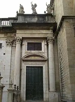 The Church of the Sagrario (Spanish: Iglesia del Sagrario) is a building attached to the north facade of the Jaén Cathedral, made due to the unevenness and damage caused by the Lisbon earthquake of 1755. The project for this work was designed by the Madrid architect Ventura Rodríguez in 1764, although it was executed by his nephew Manuel Martín Rodríguez. It was inaugurated in 1801 and was consecrated on March 22 of that year. [1]