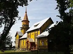 The second Uniate church in Horbów was built in 1687.[2] The third church of this denomination was erected in the village in 1772[2] or 1854,[1] with sources consistently stating that it was a wooden structure.[1][2] Since 1812, the church held a particularly venerated image of the Holy Virgin of Horbów, which had previously been kept in the parish church of Saints John the Evangelist, Nicholas, and Barbara, but was moved to the church after the parish church was damaged by Russian troops.[1]