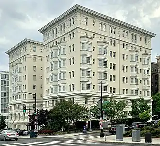 The Churchill Hotel Near Embassy Row is a hotel located at 1914 Connecticut Avenue NW in Washington, D.C., United States. The Beaux-Arts style building was erected in 1902 as The Highlands apartment house, designed by local architect Arthur B. Heaton.[2] It was later renovated into a hotel, but still kept some of its historic features.[1] According to the Churchill Hotel, its rooms contain elements of the original building.[1] The Churchill is a member of Historic Hotels of America, the official program of the National Trust for Historic Preservation.[3]