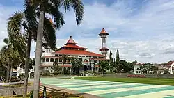Cianjur (Sundanese: ᮎᮤᮃᮔ᮪ᮏᮥᮁ) is a town and district in the West Java province of Indonesia, and is the seat of Cianjur Regency. The district of Cianjur is located along one of the main roads between Jakarta (120 km to the northwest) and Bandung (60 km to the east). The population was 158,125 at the 2010 Census and 173,265 at the 2020 Census;[1] the official estimate as at mid 2022 was 176,368.[2] Because of its location, some of Cianjur's residents commute to work in Bandung.