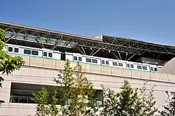 This three-level station serves the Taiwan Railway and Kaohsiung MRT. TR services operate at ground-level platforms, while KMRT services operate on an elevated platform. The KMRT station is elevated with an island platform.[2] It is located on Zhanqian St. and has two exits. The station is 185 meters long.